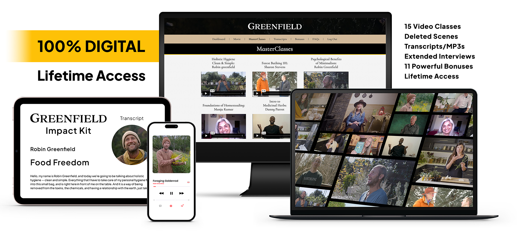 You have lifetime access to the Movie, all 15 MasterClasses (videos and transcripts), and all bonus ebooks, videos, and the Q&A with Robin.